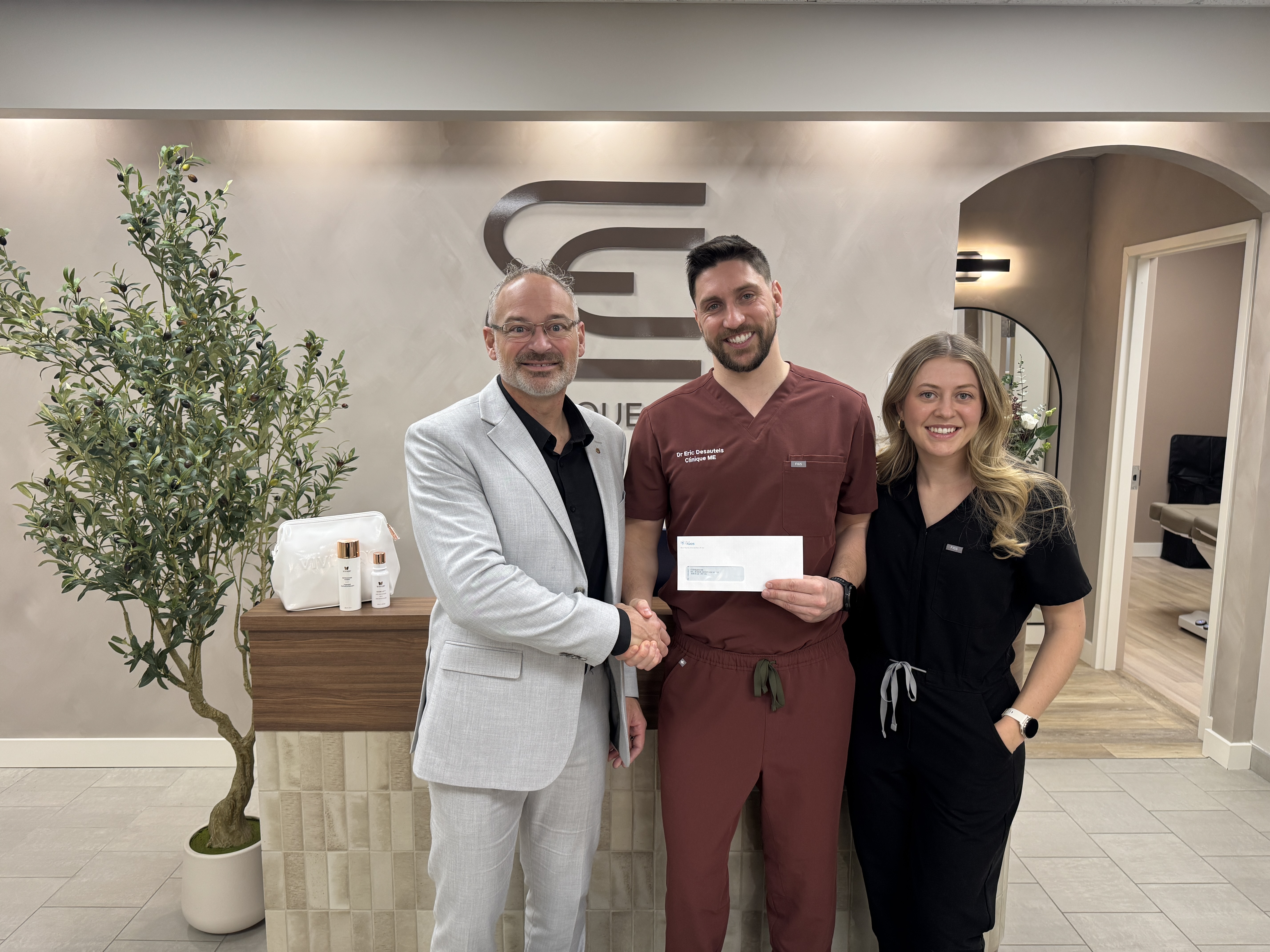 Sur la photo : Sébastien D'Astous, Dr Éric Désautels et Meg-Anne Quesnel